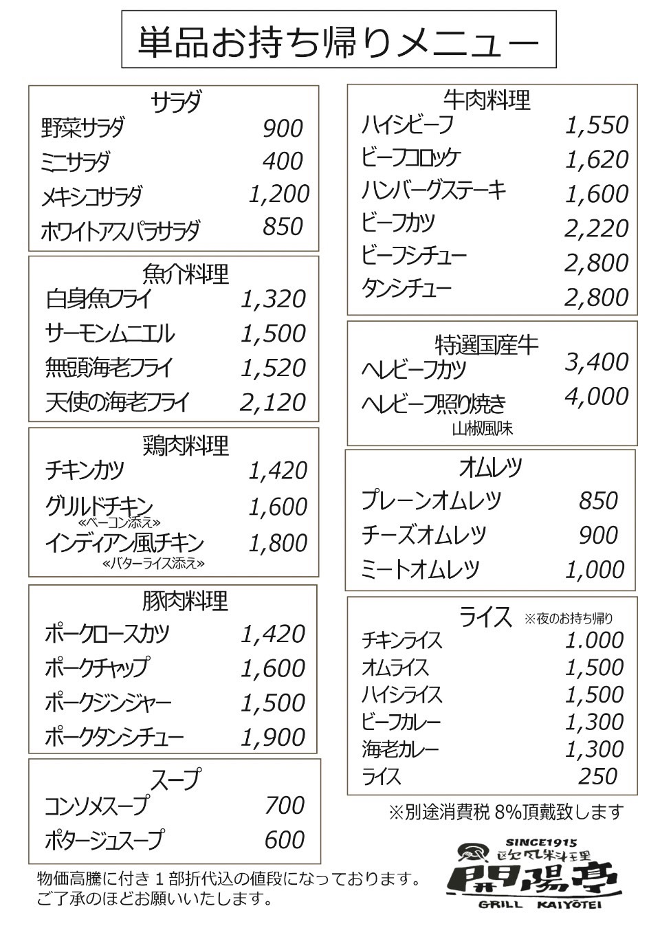 その他にも単品のお持ち帰りメニューも多数ご用意しております。